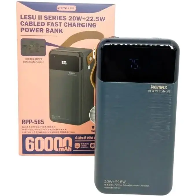 Remax RPM-565 - це потужна, універсальна та портативна батарея, яка легко заряджає різні пристрої. Завдяки великій місткості 60 000 мА/год вона може живити мобільні телефони, планшети, ноутбуки та інші пристрої впродовж декількох днів. Важливо зазначити, що він підтримує кілька протоколів швидкого заряджання, зокрема PD, QC, FCP, SCP, AFC тощо. Це означає, що автоматично адаптує вихідну напругу та струм для оптимального заряджання смартфона.
