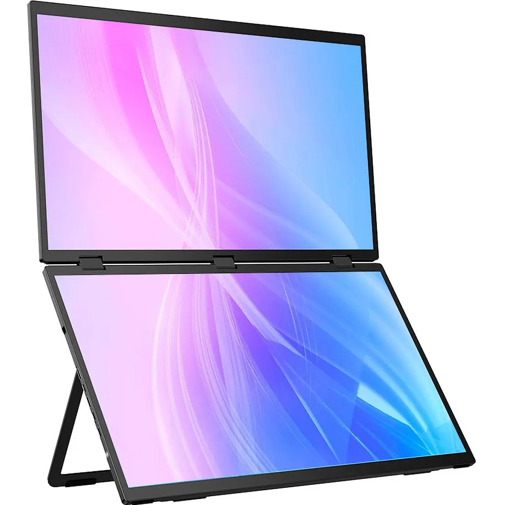 Складений портативний монітор UPERFECT Delta Max використовує вертикальні подвійні екрани, ергономічний дизайн. Подвійні екрани ноутбука можуть використовуватися разом як один або два екрани можуть працювати незалежно. Подвійний екран ноутбука допоможе вам заощадити дорогоцінний час на пошук та прокручування, так що ви можете зосередитися на творчій частині. Зробіть роботу ефективнішою.