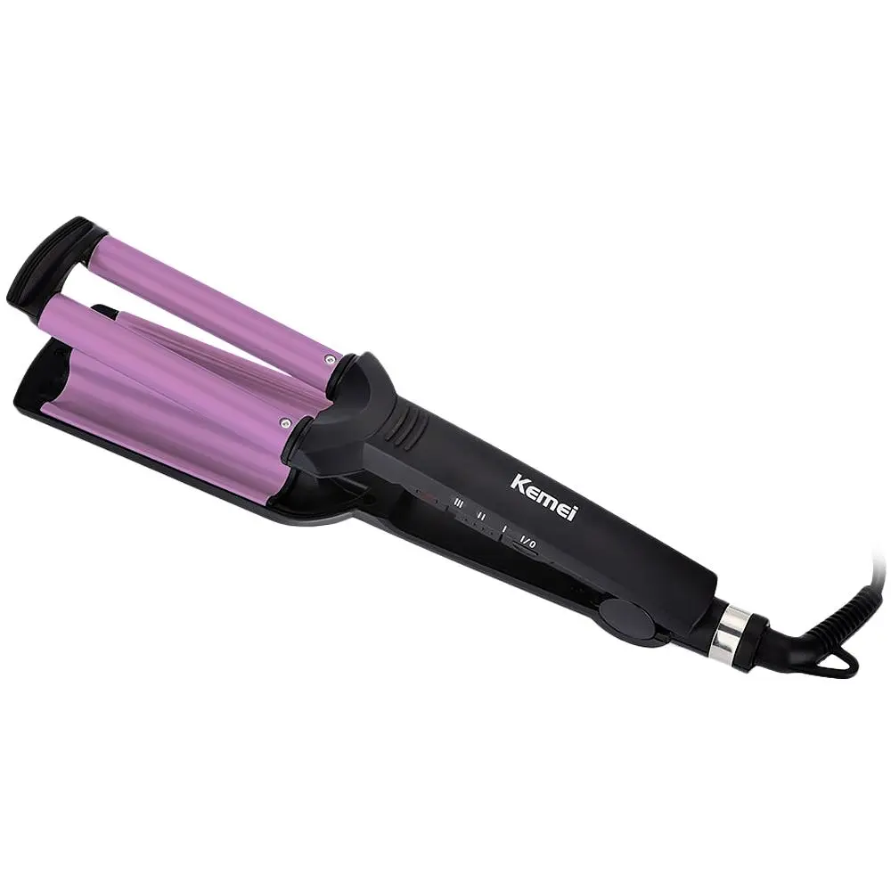 Інноваційна потрійна плойка для волосся Kemei KM-2022 допоможе швидко й легко створити романтичні локони в домашніх умовах. Завдяки великим нагрівальним елементам локони виходять об’ємними, а одночасна обробка великого обсягу волосся економить час. Проста й зручна у використанні, вона не потребує особливих навичок і підходить для всіх типів волосся незалежно від довжини чи густоти. Спеціальне керамічне покриття мінімізує шкоду від високих температур, забезпечуючи дбайливу завивку та надійне укладання. Плойка дозволяє створювати зачіски від ретро-стилю до сучасних завивок, доглядаючи за волоссям. Працює від мережі 220 В, нагрівається за короткий період, оснащена терморегулятором і обертанням шнура на 360 градусів для зручності.