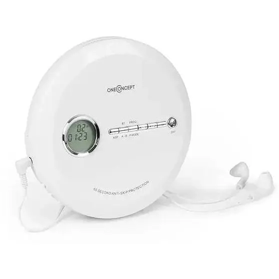 Повернення легенди: з Discman oneConcept CDC 100 BT, це повернення компакт-дисків у мобільне використання - разом із передовими технологіями! Завдяки функції Bluetooth він може миттєво підключитися до ваших бездротових навушників і надійно передавати аудіосигнали з CD, CD-R, CD-RW і MP3 CD. Завдяки роботі від акумулятора ви завжди незалежні від джерел потужність і може слухати музику протягом 8 годин у дорозі. Удома його можна легко використовувати за допомогою мережевого адаптера або кабелю micro USB, просто підключивши його до відповідного роз’єму.
