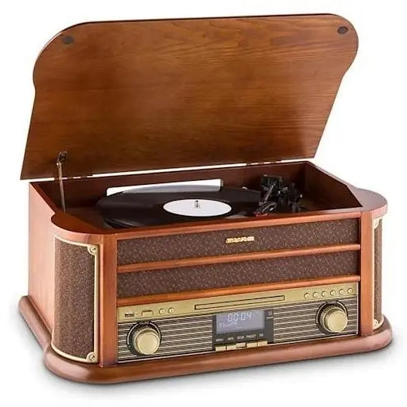 Під відкидною дерев’яною кришкою чекає ремінний програвач із трьома швидкостями відтворення, який поверне до життя запорошені колекції вінілових платівок і разом з вами віддасться ностальгії. Тим часом касетна дека, встановлена збоку, призначена для ваших скарбів.