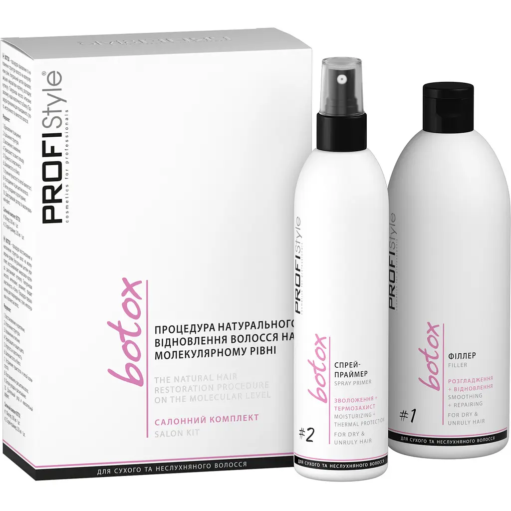 Рекомендації: для тривалого збереження та продовження результатів процедури використовувати в домашніх умовах Низькосульфатний шампунь №3 та Крем-філер №4 серії Botox ProfiStyle.