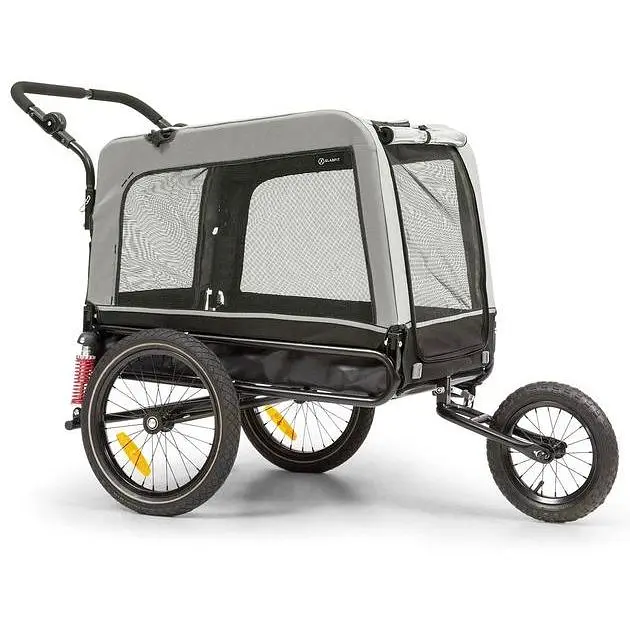 Просторий вантажний простір об’ємом приблизно 240 літрів і максимальною вантажопідйомністю 40 кг може забезпечити достатній простір для зручного транспортування маленьких і середніх собак завдяки концепції SmartSpace . Виготовлений зі сталевої рами з порошковим покриттям і покритий особливо міцним полотном 600D Oxford, ваш чотирилапий компаньйон завжди добре захищений. Автомобіль спеціально посилений для перевезення собак і оснащений нековзкою, водовідштовхувальною та легкою для очищення пластиковою підлогою, а також високоякісною підвіскою з підвіскою SoftRide . Попередньо встановлений ремінь безпеки всередині може забезпечити його безпеку під час водіння. Замикаються сітки спереду та ззаду також спрощують входження собаки та можуть забезпечити приплив свіжого повітря під час руху. У негоду або сильний вітер передні, задні та дахові стулки можна повністю закрити додатковим прозорим брезентом.