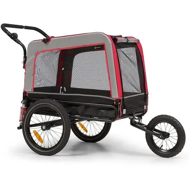Як випливає з назви, причіп і коляска для собак Klarfit Husky Vario 2-в-1 можна використовувати в двох різних сферах: з одного боку, він підходить як причіп для велосипеда з дишлом довжиною 75 см із попередньою Зібрана муфта швидко і легко кріпиться до заднього колеса велосипеда. З іншого боку, він підходить як баггі, який в основному використовується для пробіжок або тривалих походів. Дишло поступається місцем передньому колесу, яке легко встановити, а регульовану по висоті штовхальну рукоятку можна встановити на двох готових до використання пазах ззаду. Однак, якщо професіонал з транспортування зараз не потрібен, два задні колеса можна миттєво зняти завдяки швидкороз’ємній осі, і автомобіль можна скласти всього за кілька кроків.