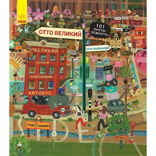 Гортаючи цей неймовірний вімельбух, дитина подорожуватиме разом із котиком Отто та його татком й одночасно вивчить понад 101 протилежність. Погляньте на сторінки цієї книги: на них слова й малюнки, думки й жарти переплетені між собою. Саме за стильні незвичайні ілюстрації та несподіваний гумор батьки й діти по всьому світі люблять книги Тома Шампа.