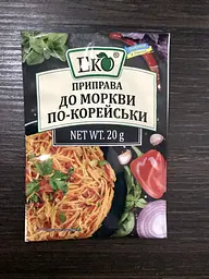 риправа дуже вдала — має збалансований склад спецій, що надає моркві насичений аромат і характерний пікантний смак. Завдяки готовій суміші процес приготування стає простим і швидким: достатньо лише додати її до моркви та олії. Смак виходить яскравим, але не надто гострим, тому страва подобається навіть тим, хто не любить занадто гостре. Зручна упаковка на 20 г — оптимальна порція для кількох приготувань.