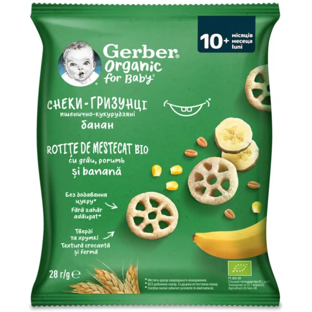 До кінця акції 2 дніПшенично-кукурудзяні снеки-гризунці Gerber з бананами для дітей із 10 місяців - це: