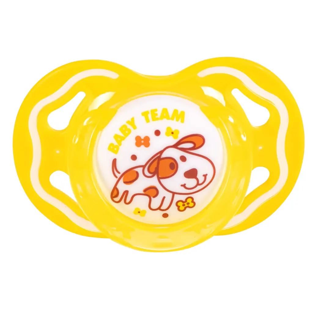 Пустушка силіконова Baby Team (Бебі Тім) задовольняє природний рефлекс смоктання і тренує губні м'язи і щелепи, грає важливу роль в розвитку мовних навичок і навичок прийому їжі.