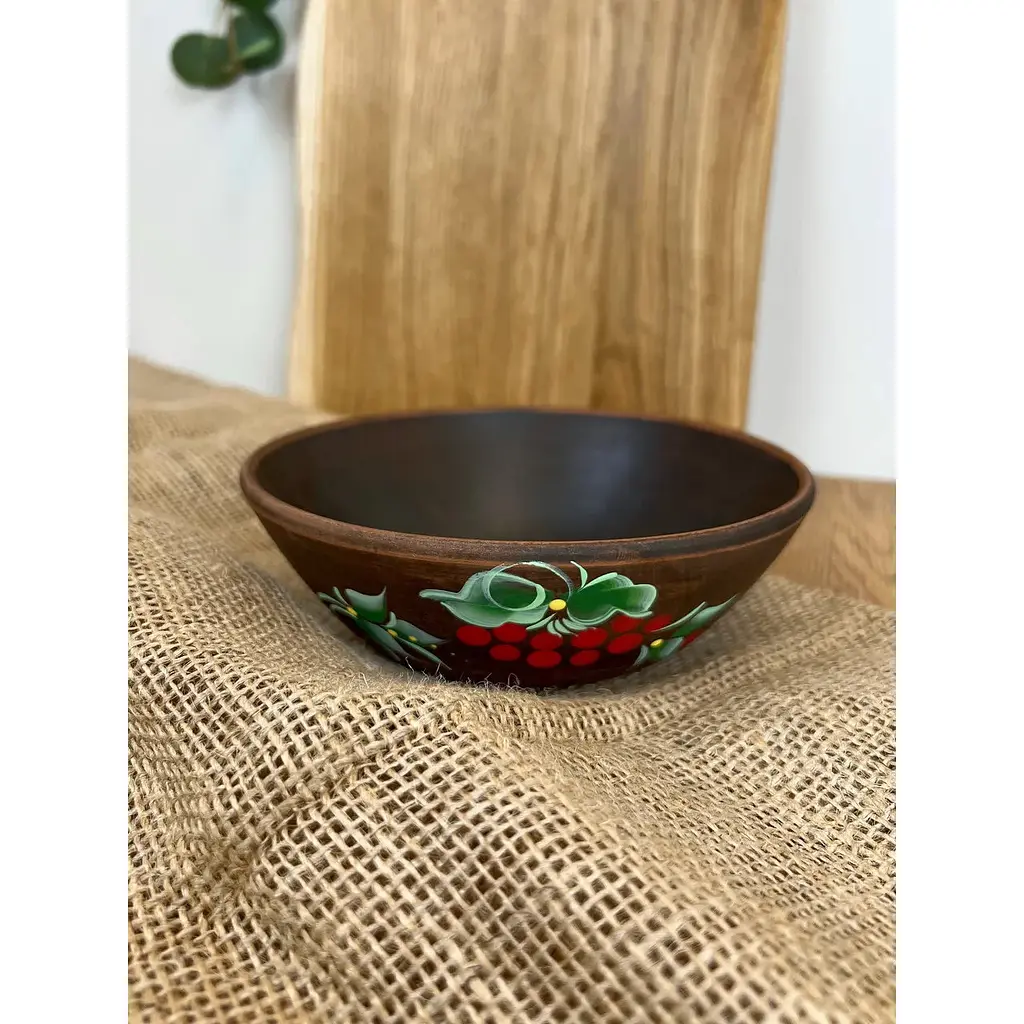 Невелика глиняна піала об'ємом 0,5 літра з розписом "Калина" чудово підходить для подачі супів, закусок або десертів. Виготовлена вручну з натуральної глини і покрита харчовою глазур'ю. Символ калини надає посуду українського колориту, а натуральні матеріали допомагають зберегти тепло і смак страв.
