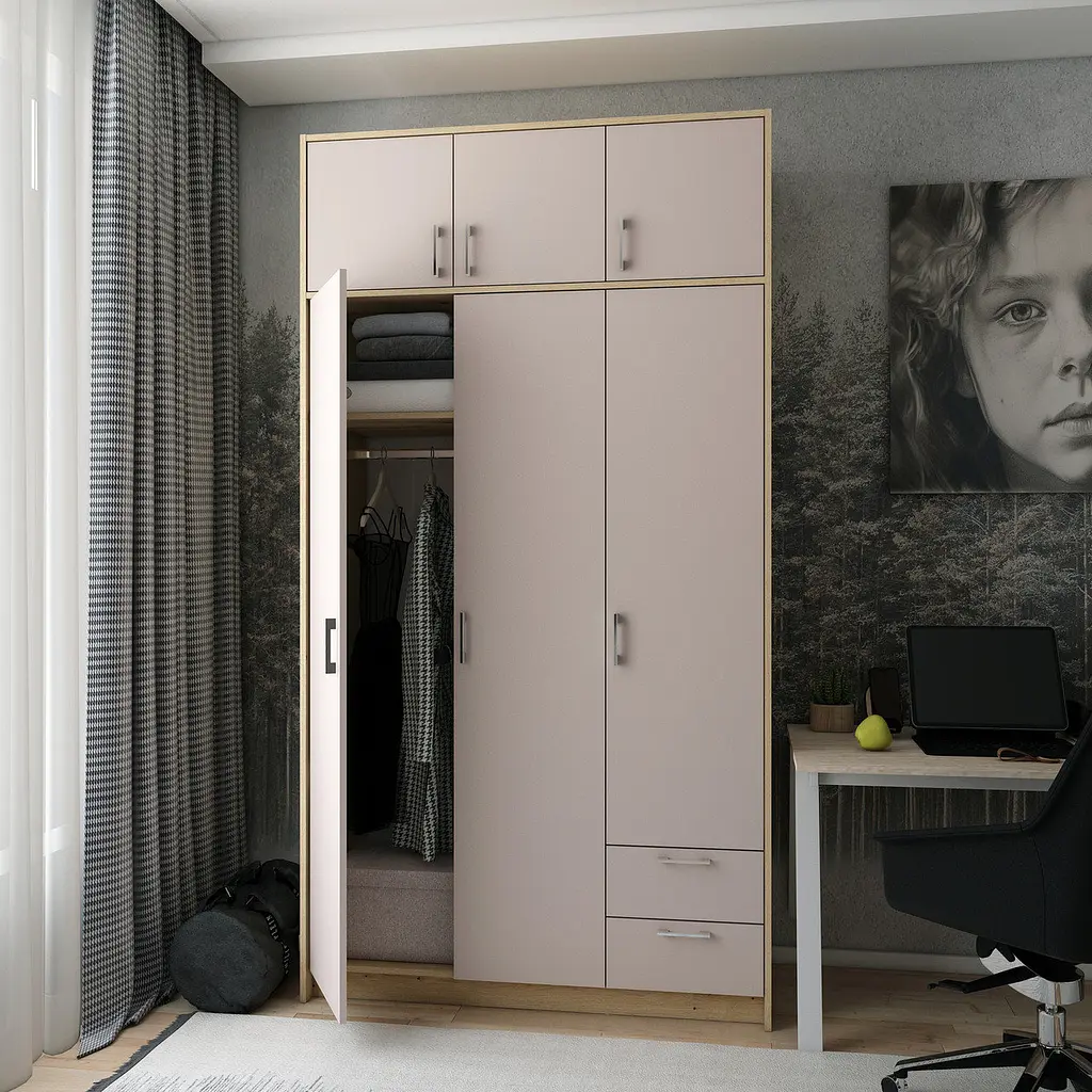 Колекція шаф для одягу Ронді - це багатофункціональний набір виробів для житла. Колекція передбачає декілька одиниць, завдяки яким створюється можливість комбінувати його в цілі комплектні рішення. артизан/графіт і дуб артизан/кашемір. Три варіанти ширини шаф: 121 см, 160 см, також для кожного виду шаф розроблена відповідна антресоль. Країна зовнішніх, внутрішніх деталей, полиць, а також ящиків – 0.5 мм.