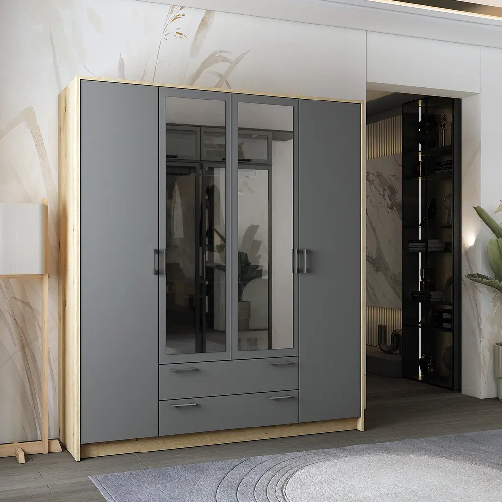 Колекція шаф для одягу Ронді - це багатофункціональний набір виробів для житла. Колекція передбачає декілька одиниць, завдяки яким створюється можливість комбінувати його в цілі комплектні рішення. артизан/графіт і дуб артизан/кашемір. Три варіанти ширини шаф: 121 см, 160 см, також для кожного виду шаф розроблена відповідна антресоль. Країна зовнішніх, внутрішніх деталей, полиць, а також ящиків – 0.5 мм.