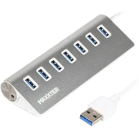 Maxxter HU3A-7P-01 – це 7-портовий USB-концентратор, який дозволяє підключити до комп’ютера чи ноутбука велику кількість пристроїв. Завдяки підтримці USB 3.0 і міцному алюмінієвому корпусу він ідеально підходить для роботи з периферією.