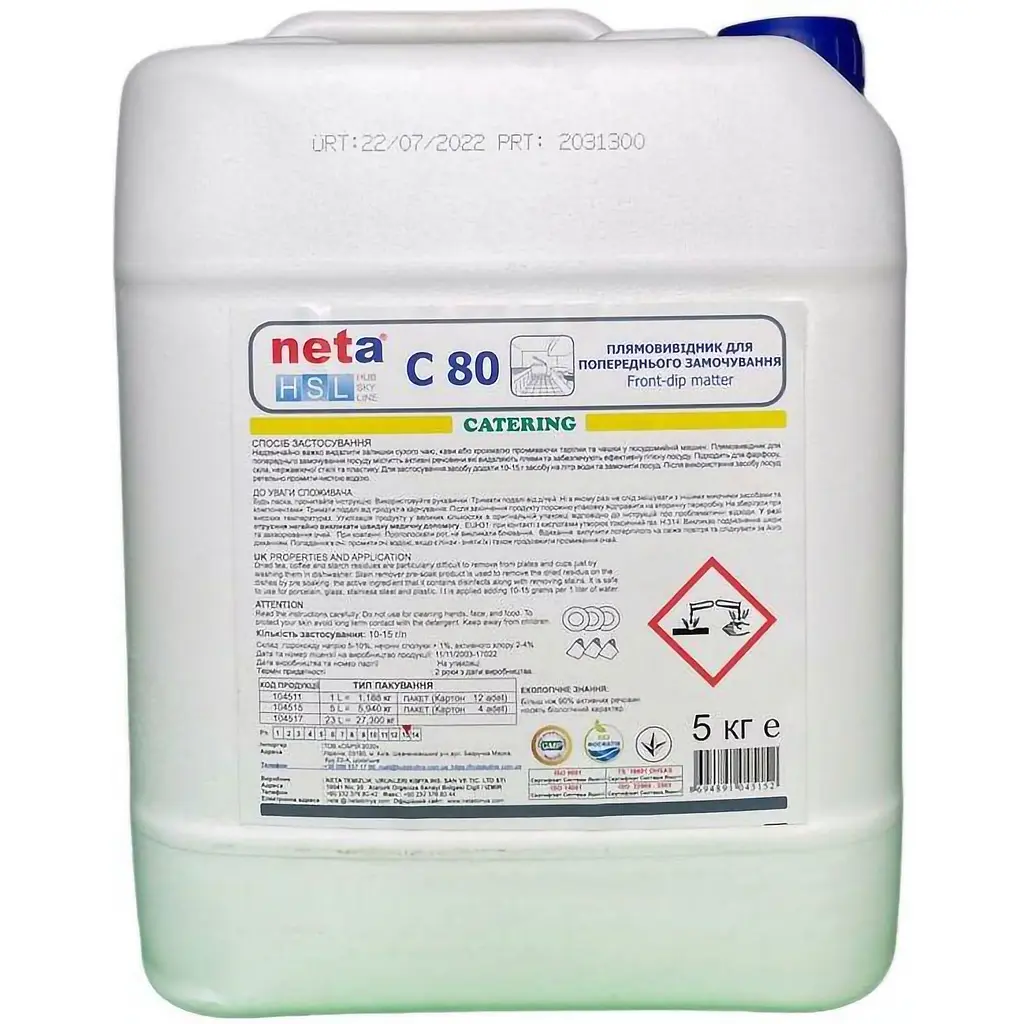 Засіб для відбілювання посуду Neta С 80 є ідеальним рішенням для професійних кухонь і допоможе забезпечити вам чистоту та безпеку при приготуванні та подачі страв. Спеціально розроблений для видалення плям, відбілювання і відновлення блиску на посуді та столових приладах.