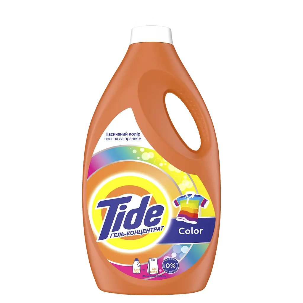 Рідкий пральний порошок Tide (Тайд) Color - це ефективність очищення та особлива технологія, яка зберігає насичений колір речей прання за пранням.