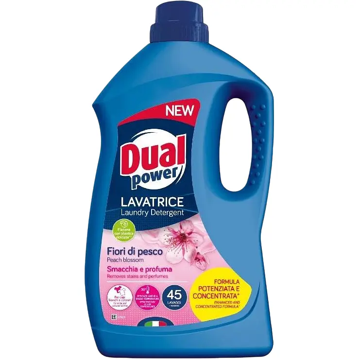 Рідкий пральний засіб Dual - це висококонцентрований універсальний засіб, розроблений для забезпечення бездоганної чистоти та догляду за вашим одягом. Його інноваційна формула ефективно проникає у волокна тканини, видаляючи навіть складні плями та глибокі забруднення, зберігаючи при цьому яскравість кольорів та ніжність білизни. Засіб ідеально підходить як для ручного, так і для машинного прання, повністю виполіскується і залишає після себе лише приємний, ледь відчутний аромат чистоти. Це економічне та потужне рішення для щоденного прання.