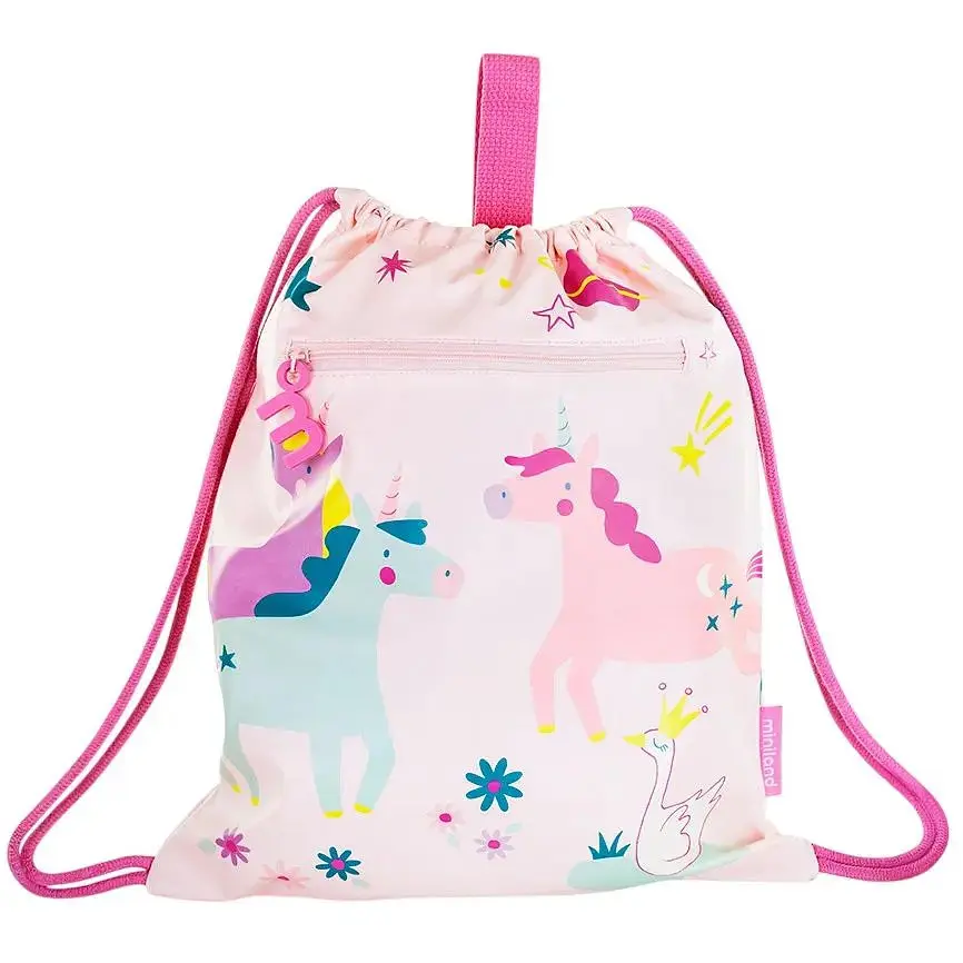 Miniland Kiddie Sack Jungle - зручний та стильний рюкзак-мішок для малюків від 1 до 5 років. Виготовлений із водовідштовхувального поліуретану, який захищає вміст від вологи та забруднень. Розмір рюкзака досить місткий (29х35 см), щоб покласти туди змінний одяг, взуття, іграшки чи інші необхідні малюкові речі.