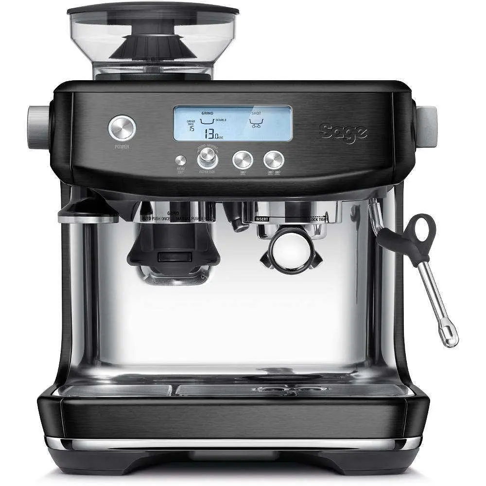 Важіль еспресоSage SES878BST the Barista Pro, для приготування еспресо, капучіно, латте та інших видів кави, готовий до використання за 3 секунди. конічна м'ясорубка з металевими шліфувальними каменями, 30 ступенів регулювання грубості помелу кавових зерен, інноваційний LCD дисплей з інтуїтивно зрозумілим керуванням, контейнер для кавових зерен 250 г, ємність для води 2 л з системою фільтрації Claris, споживана потужність: 1380 - 1650 Вт.