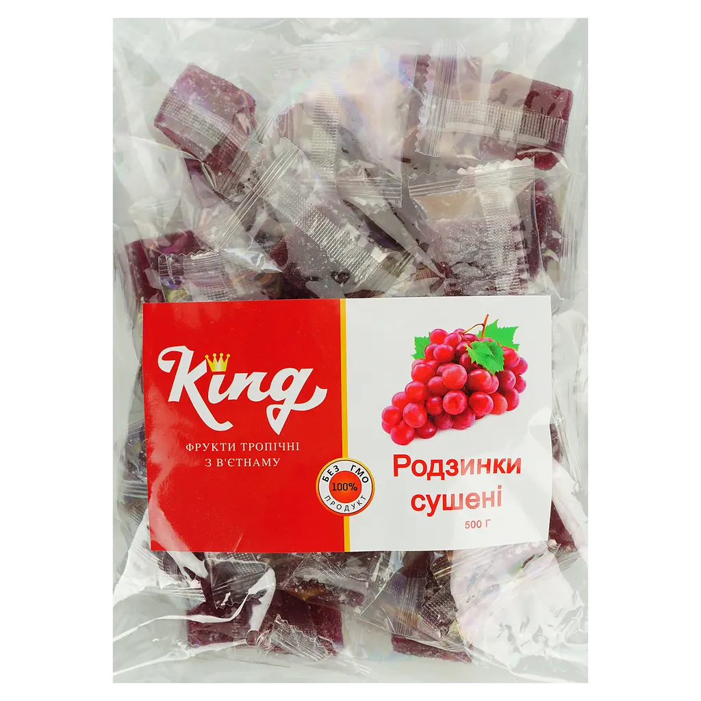 Родзинка King сушена - це чудовий вибір для любителів солодощів, які цінують яскравий смак та натуральність продуктів. Виготовляється з використанням високоякісних інгредієнтів, що забезпечують неповторний фруктовий аромат і насолоду кожним шматочком. Чудово підходить як для щоденного перекусу, так і для святкового столу, стаючи улюбленим смаколиком для всієї родини. Його можна вживати у будь-який час дня.