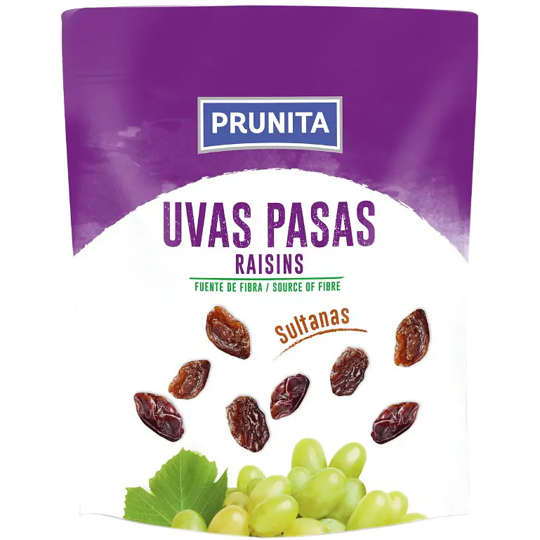 Родзинки Prunita Uvas Pasas Sultanas світлі – це натуральний продукт від іспанської компанії Prunita, виготовлений із сушених ягід світлого винограду сорту султанки. Родзинки не містять кісточок і мають ніжну текстуру з тонкою шкіркою та солодким смаком. Продукт доступний у упаковці вагою 200 г і є чудовим вибором для перекусу або використання в кулінарії. Вони багаті клітковиною, антиоксидантами, вітамінами (В, С, Е) та мінералами (калій, магній, залізо), сприяючи покращенню травлення, зміцненню імунітету та підтримці серцево-судинної системи.