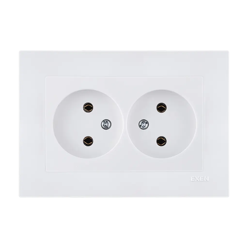 Дана модель 2-ї розетки має два гнізда та може забезпечити підключення декількох приладів. Розетки та вимикачі EXEN Karell відмінно поєднуються з будь-якими інтер'єрними рішеннями. Прості в монтажі можуть встановлюватися за допомогою шурупів, забезпечуючи якісне з'єднання з мережею. Функціонує при напрузі від 220 до 250 Вольт.
