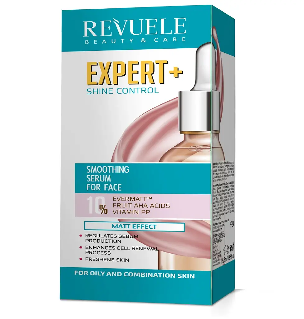Фруктові кислоти AHA допомагають відлущувати мертві клітини, очищають шкірний жир і розгладжують шкіру. усуваючи блиск і регулюючи вироблення шкірного жиру. Вітамін РР покращує процес відновлення клітин та освіжає шкіру. Цю сироватку можна використовувати для підготовки шкіри перед нанесенням макіяжу.