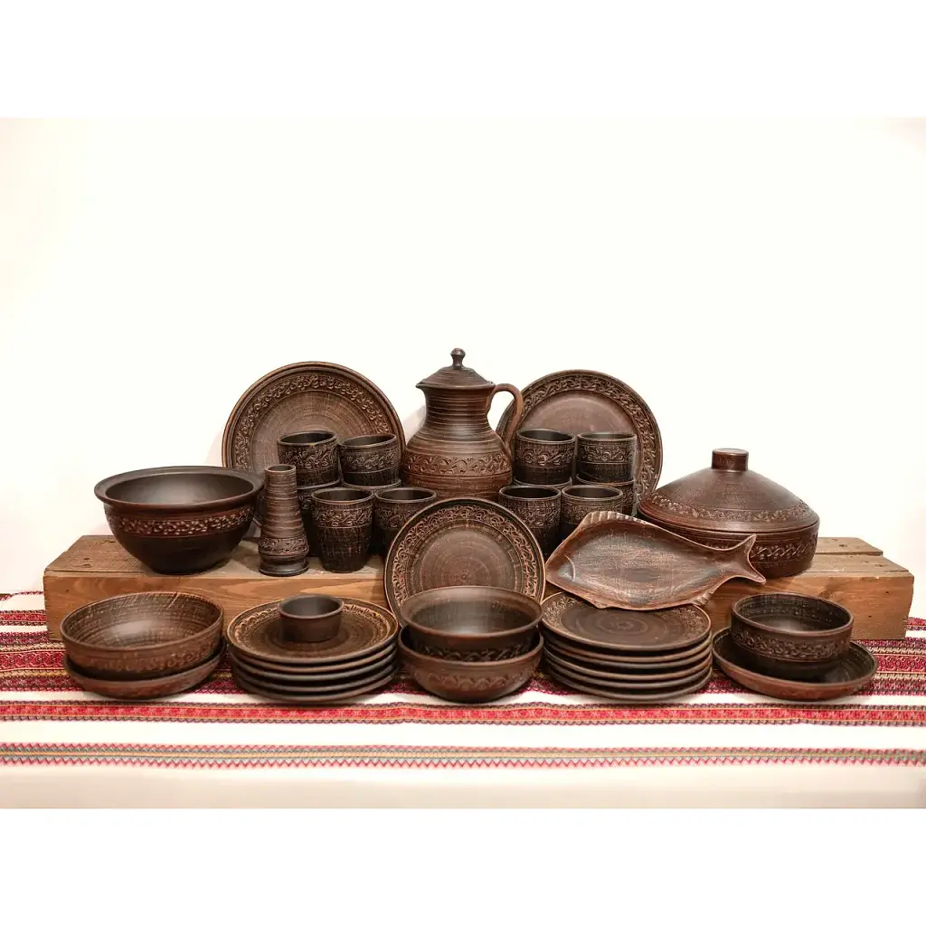 Виготовлений із натуральної кераміки, набір поєднує практичність і автентичний декор, підкреслюючи домашній затишок та українські традиції.