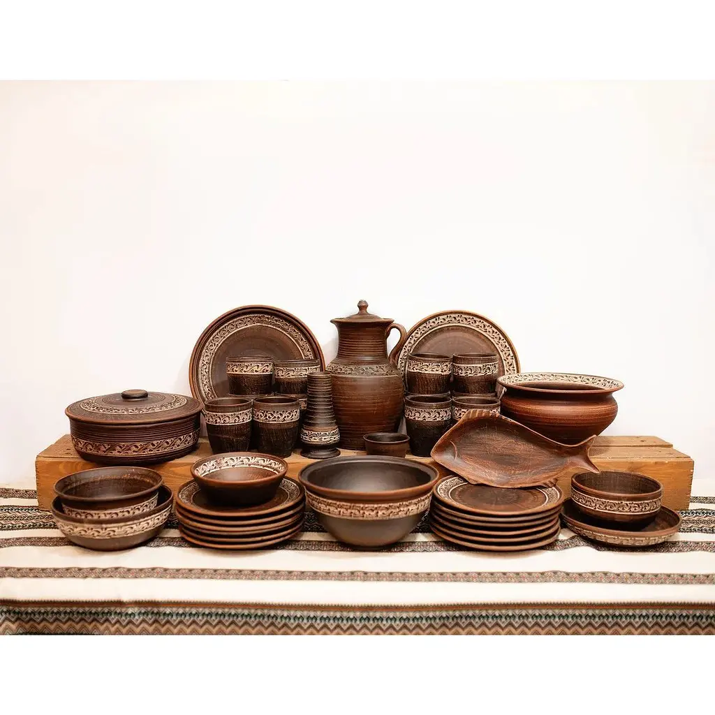 Виготовлений із натуральної кераміки, набір поєднує практичність і автентичний декор, підкреслюючи домашній затишок та українські традиції.