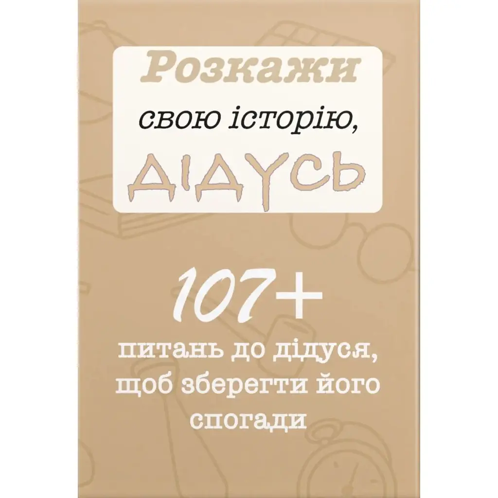 Усередині - 107 питань, що допоможуть дідусеві згадати своє дитинство, юність, важливі події життя, шлях до батьківства та передати частинку себе наступним поколінням.