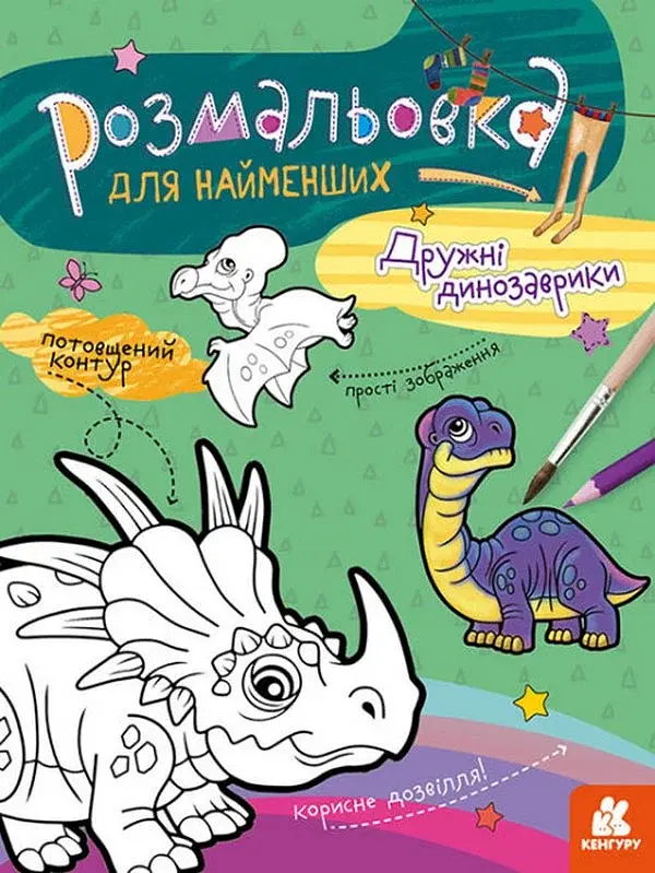Серія «Розмальовка для найменших» охоплює безліч тем, цікавих діточкам: комашиний мікросвіт, тваринки, динозаврики, поні, лами, єдинороги, свята, машинки, цифри, букви. Кожна книжка містить прості малюнки з потовщеним контуром, які дітям буде просто й цікаво розфарбовувати.