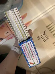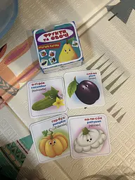 Зручні картки невеликого розміру. Подобається що слова розділені на склади та прописано англійською разом з транскрипцією. В характеристиках вказан вік 3 роки. Я купувала для значно меншої дитини. Йому цікаво розглядати, картки маленькі і він впевнено тримає, розглядає але все тягне до рота. Картки розмокають. Тому доведеться відкласти для більш дорослого віку