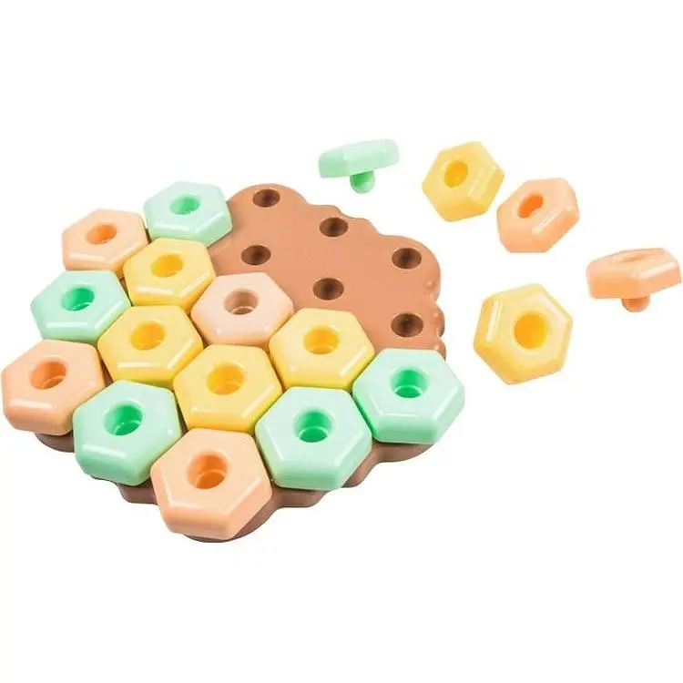 Гра сприяє розвитку дрібної моторики, розвитку просторового мислення, інтелекту та уваги. Надягаючи яскраві різнокольорові елементи на основу, можна створювати цікаві конструкції: квіточки, тортики, сніжинки, вежі, літачки та багато іншого.