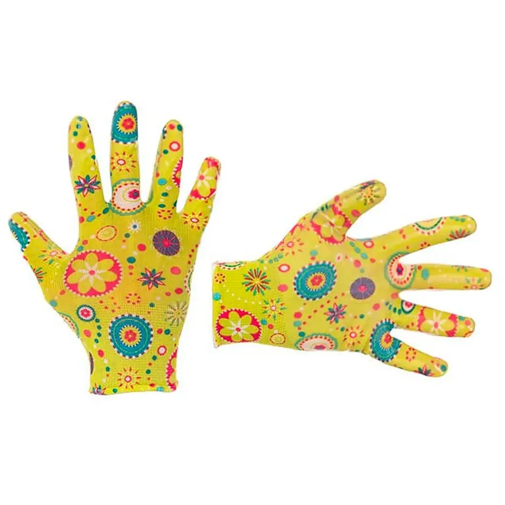 Садові рукавички SP-0165 захистять ваші руки під час виконання садових та господарських робіт. Основа рукавичок повністю виготовлена з поліестеру. Така пряжа із синтетичних волокон забезпечує зносостійкість, комфорт та гігієнічність. Нітрилове покриття забезпечує відмінну стійкість до стирання, а також надійний захист долонь, пальців від пошкоджень та впливів шкідливих речовин. Особливості: Висока чутливість забезпечується тонкою та міцною основою; Надійне захоплення слизьких та гладких предметів завдяки нітриловому покриттю; Відмінна вентиляція досягається за рахунок наявності покриття лише на робочій поверхні; Комфорт, зручність та щільна посадка забезпечується еластичним манжетом та безшовною основою рукавички. Рукавички мають гарні захисні властивості від механічних пошкоджень (порізи, проколи). Робоча поверхня долоні та пальці залиті нітрилом. Нітрилове покриття добре підходить для виконання робіт у маслянистому середовищі. Еластичний манжет захищає від влучення рукавички дрібних частинок. Розмір: 8"; Покриття: нітрил; Манжет: в'язаний; Колір: жовтий