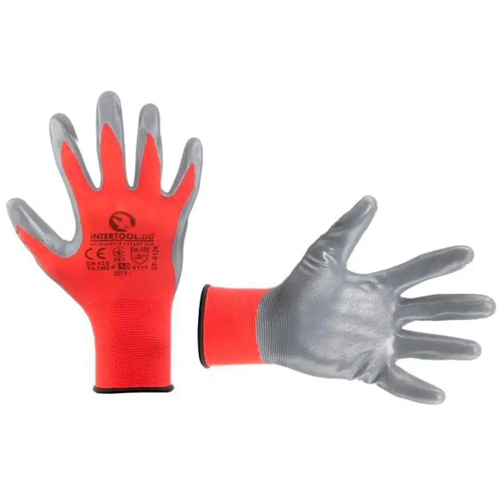 Рукавички SP-0124 виготовлені із синтетичного волокна та пов'язані безшовним методом. Покриті сірим нітрилом на долоні, що забезпечує стійкіший захист рук від забруднень при проведенні побутових, будівельних та садових робіт. Стійкі до стирання та мають тривалий термін експлуатації. Повітропроникна тканинна основа створює додатковий комфорт. Розмір: 10"; В'язка: 13 петель на 1", безшовна; Покриття: нітрил; Манжет: в'язаний