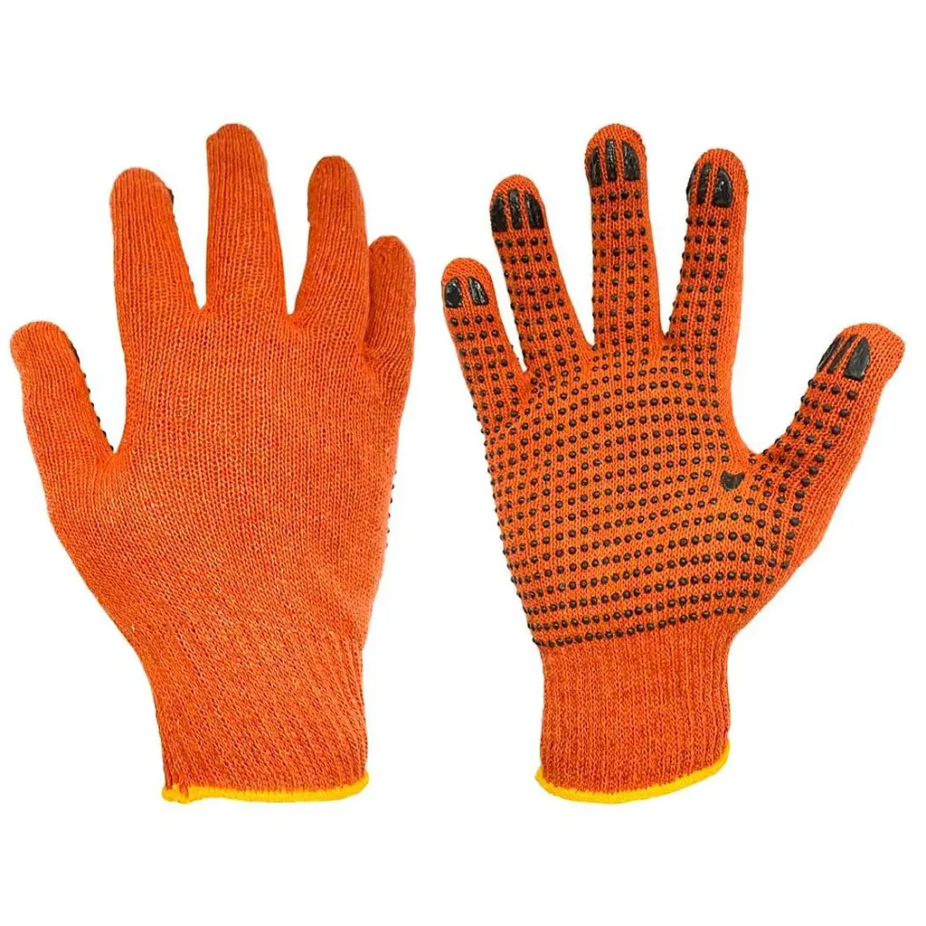 Х/б рукавичка з ПВХ точкою довжиною 10" призначена для захисту рук під час робіт з механічними, будівельними або садовими інструментами. М'яка тканина, що дихає, забезпечує комфорт, а ПВХ точка підвищує зчеплення з предметами, зменшуючи ризик ковзання.