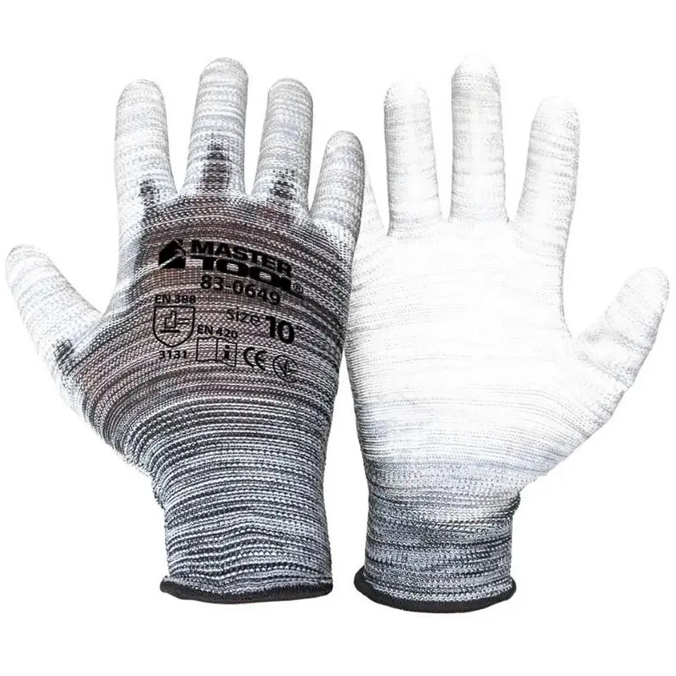 Рукавичка Mastertool – практичний захисний виріб для рук під час робіт. Поліуретанове покриття забезпечує надійне зчеплення з інструментами та матеріалами, а меланжева текстура приховує забруднення, тому рукавички залишаються обережними довше. Зручні та міцні, добре підходять для тривалих будівельних чи ремонтних робіт.
