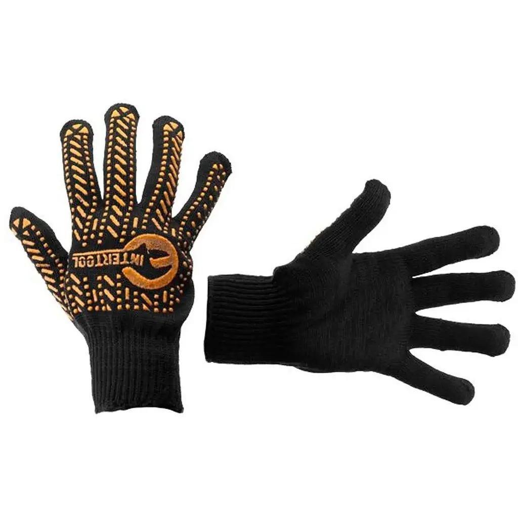 Рукавички бавовняні SP-0128 чорного кольору. На долоні нанесено ПВХ-покриття, що забезпечує захист рук та надійне захоплення предметів. З еластичними манжетами, що м'яко прилягають до кисті і запобігають попаданню побутового та будівельного сміття всередину рукавичок. Завдяки х/б основі забезпечується вільний повітрообмін. Призначений для виконання будівельних та сільськогосподарських робіт, ручних механозбірних робіт. Розмір: 10";