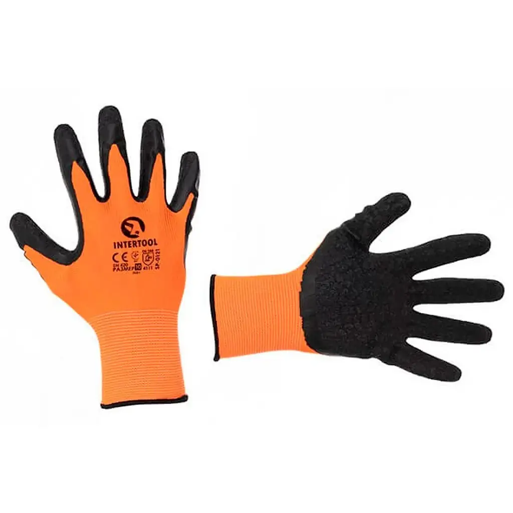 Рукавички SP-0121 виготовлені із синтетичного волокна та пов'язані безшовним методом. Покриті сірим рифленим латексом на долоні, що забезпечує максимально надійне зчеплення з предметами під час проведення побутових, будівельних та садових робіт. Стійкі до стирання та мають тривалий термін експлуатації. Повітропроникна тканинна основа створює додатковий комфорт. Розмір: 10"; Покриття: латекс на долоні; Манжет: в'язаний; В'язка: 13 петель на 1", безшовна