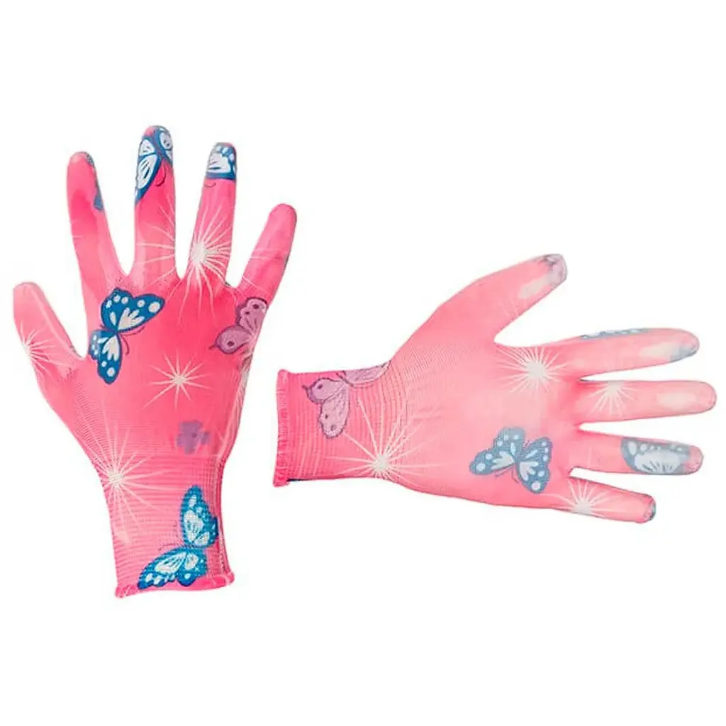 Садові рукавички SP-0162 захистять ваші руки під час виконання садових та господарських робіт. Основа рукавичок повністю виготовлена з поліестеру. Така пряжа із синтетичних волокон забезпечує зносостійкість, комфорт та гігієнічність. Поліуретанове покриття забезпечує відмінну тактильну чутливість та захист від порізів, а також захист долонь, пальців від пошкоджень та вологи. Особливості: Висока чутливість забезпечується тонкою та міцною основою; Надійне захоплення слизьких та гладких предметів завдяки поліуретановому покриттю; Відмінна вентиляція досягається за рахунок наявності покриття лише на робочій поверхні; Комфорт, зручність та щільна посадка забезпечується еластичним манжетом та безшовною основою рукавички. Рукавички мають гарні захисні властивості від механічних пошкоджень та стирання. Поліуретанове покриття, нанесене по поверхні долоні та пальців, забезпечує високу точність у роботі та максимальну тактильну чутливість. Еластичний манжет захищає від влучення рукавички дрібних частинок. Розмір: 8"; Покриття: поліуретан; Манжет: в'язаний; Колір: рожевий
