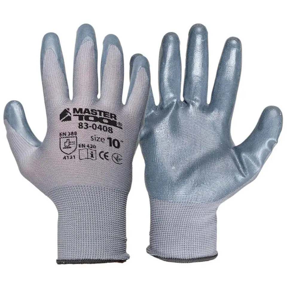 Безшовні трикотажні рукавички з нітриловим покриттям долоні (сірі). Висока стійкість до розривів та проколів, еластичні навіть за низьких температур. Використовуються в домашньому господарстві, саду та майстернях. Підходять для захисту від впливу різних масел, мастил та розчинників.