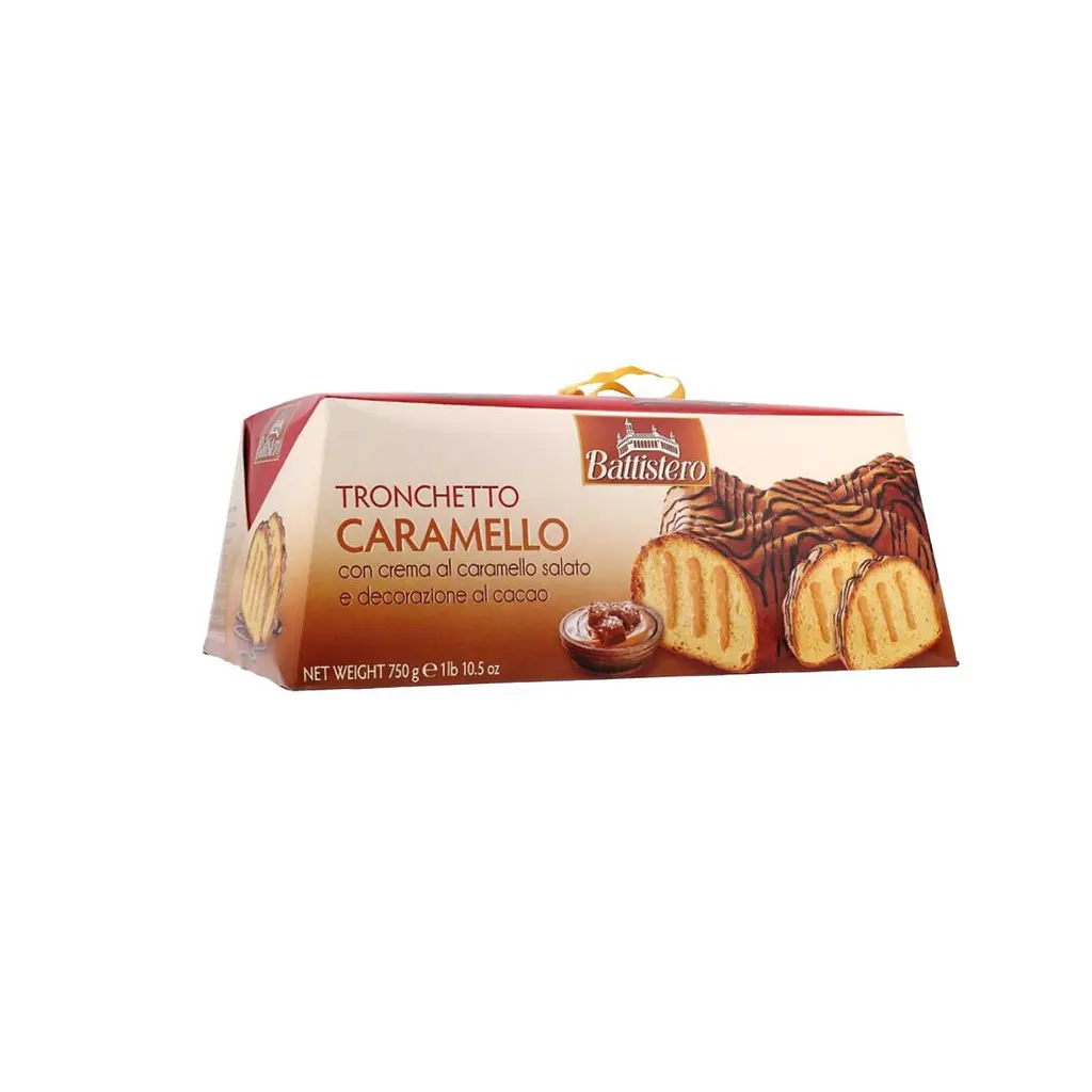 Рулет Battistero Tronchetto з карамельним кремом - витончений десерт у класичному італійському стилі, що поєднує м’яке бісквітне тісто з ніжною карамельною начинкою. Його солодкий аромат і насичений смак створюють відчуття домашнього затишку та свята.
