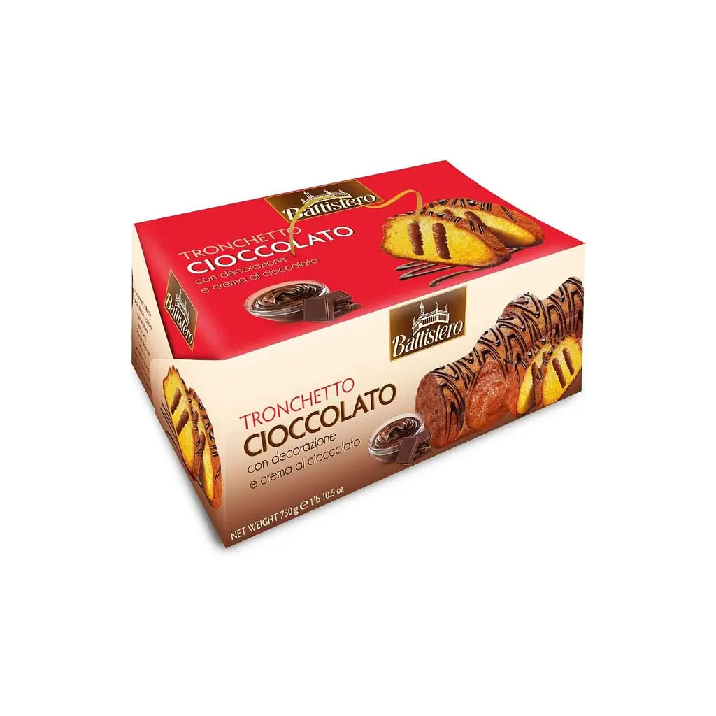 Рулет Battistero Tronchetto з шоколадним кремом - ароматний десерт у традиційному італійському стилі, який поєднує ніжне бісквітне тісто з насиченим шоколадним кремом усередині. Завдяки м’якій структурі та гармонійному смаку цей рулет ідеально підходить до кави або чаю, створюючи атмосферу домашнього тепла та свята.