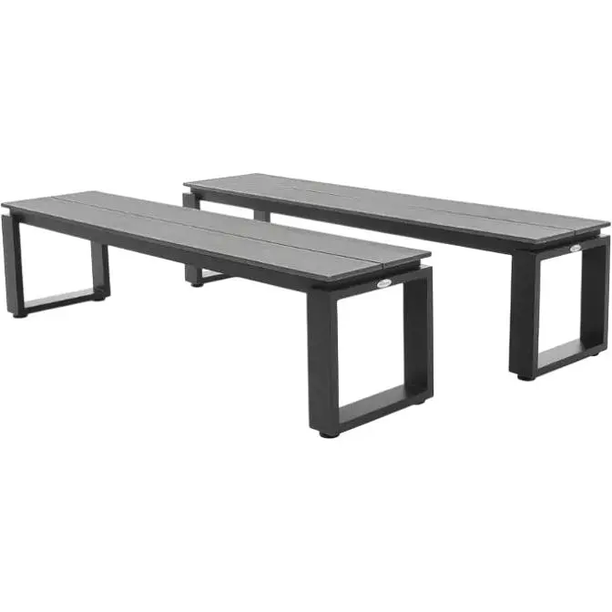 Каркас лавок виготовлений із легкого, але надзвичайно міцного алюмінію, що забезпечує стійкість до корозії та дозволяє легко переміщати меблі відповідно до ваших потреб. Сидіння лавок виготовлене з високоякісного полімерного матеріалу, що імітує натуральне дерево, але при цьому не тріскається, не тьмяніє та не боїться вологи. Рама пофарбована в елегантний чорний матовий колір.