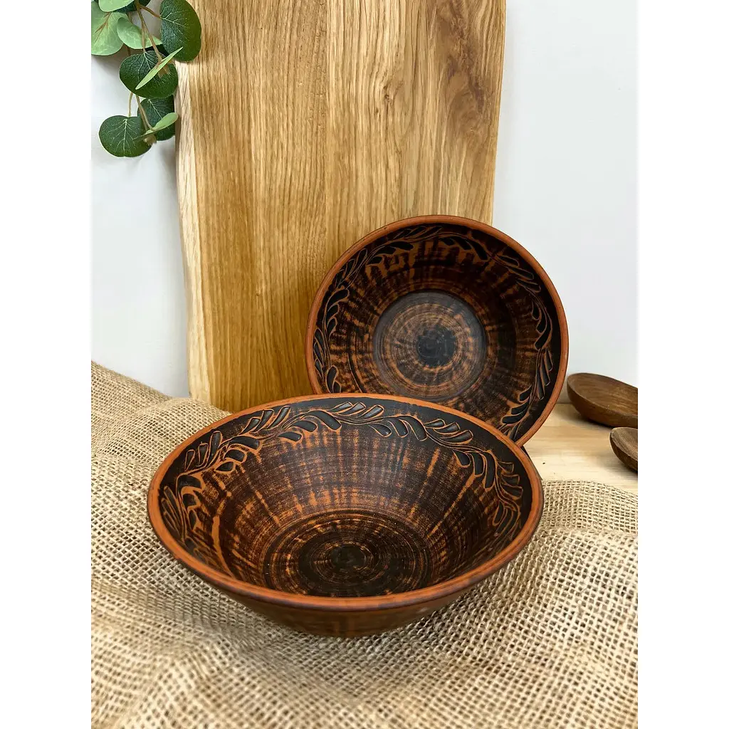 Салатник №7 - зручна глиняна миска об'ємом 0,7 л для індивідуальної подачі салатів, гарнірів, овочевих страв або десертів. Виготовлений вручну з натуральної глини, добре зберігає температуру і подає страву з теплом. Завдяки компактному розміру і класичній формі підходить як для повсякденного сервірування, так і для святкового столу.