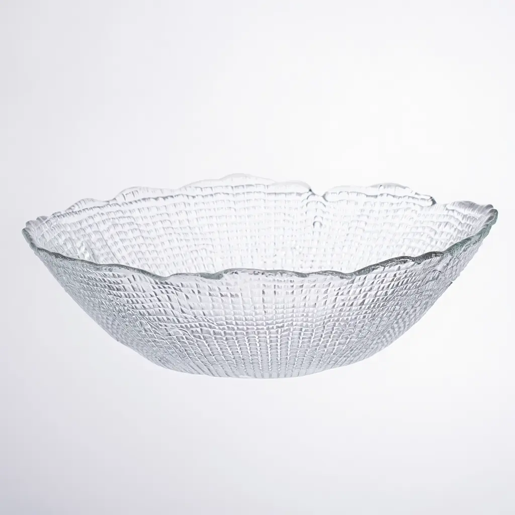 Стильна та практична скляна салатниця середнього розміру стане незамінним помічником на вашій кухні. Вона має той самий вишуканий рельєфний візерунок і фігурний край, що і її більша версія, але має компактніші габарити. Цей салатник ідеально підходить для подачі порційних салатів, гарнірів, закусок чи десертів. Його універсальний дизайн гармонійно доповнить будь-яке сервірування, від повсякденного до святкового.