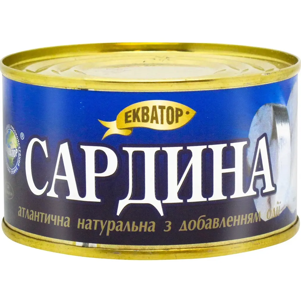 Сардина Екватор натуральна атлантична з додаванням олії - це високоякісний консервований продукт, представлений у зручній банці масою 230 г.