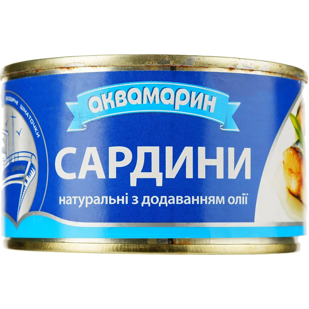 Сардини Аквамарин натуральні з додаванням олії стануть чудовим доповненням страв для щоденної або святкової трапези.