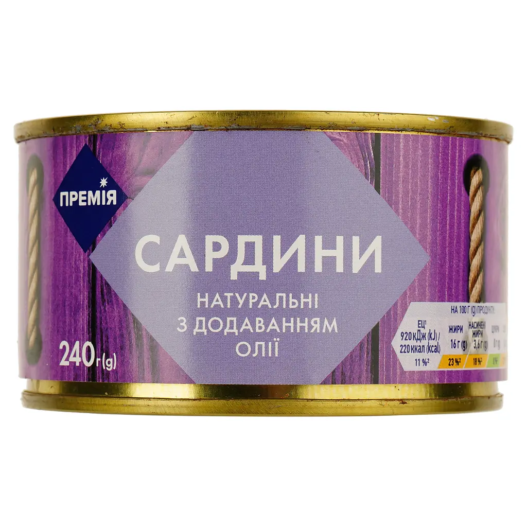 Сардини Премія натуральні з додаванням олії - чудовий перекус для любителів рибних продуктів.
