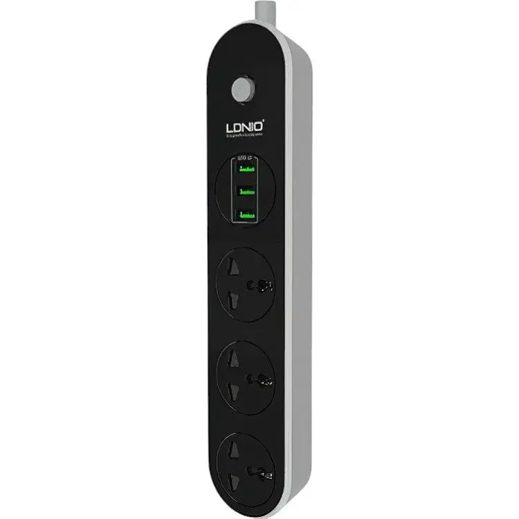 Мережевий фільтр LDNIO SC3301, 3 Розетки + 3 USB, 1.6 м, переріз 3х0,75 мм Мережевий фільтр LDNIO SC3301 — необхідна річ у кожному домі. З цим мережевим фільтром тобі більше не доведеться стояти зі смартфоном біля розетки, адже можна протягнути його до ліжка. На вигляд фільтр маленький, та завзятий! З захистом від замикань, перегрівання і стрибків напруги, тому не варто переживати про те, що він може перегоріти та перегрітися, Під'єднати ноутбук, беcперебійник, чайник, мікрохвильовку, поставити павербанк на зарядку, все це зробить стильний мережевий фільтр із 3 розетками та 3 USB-портами.