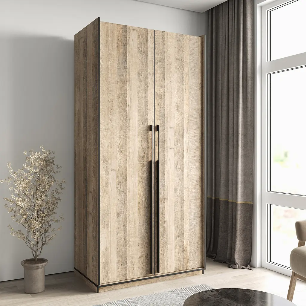 Шафа для дому - це зручна і функціональна шафа для зберігання речей та інших предметів. Виготовлений з ЛДСП, що забезпечує довговічність та міцність конструкції. Шафа оснащена штангою для зручного розміщення речей. Дверцята оснащені петлями з доводчиком, що забезпечує плавне закривання. Чорна фурнітура та металеві ручки надають шафі стильного та сучасного вигляду. Чорна кромка товщиною 1 мм надає виробу додаткової міцності та захищає від пошкоджень. Кріплення на рафіксах та мініфіксах забезпечує надійність конструкції. На антресолях використовуються типони.