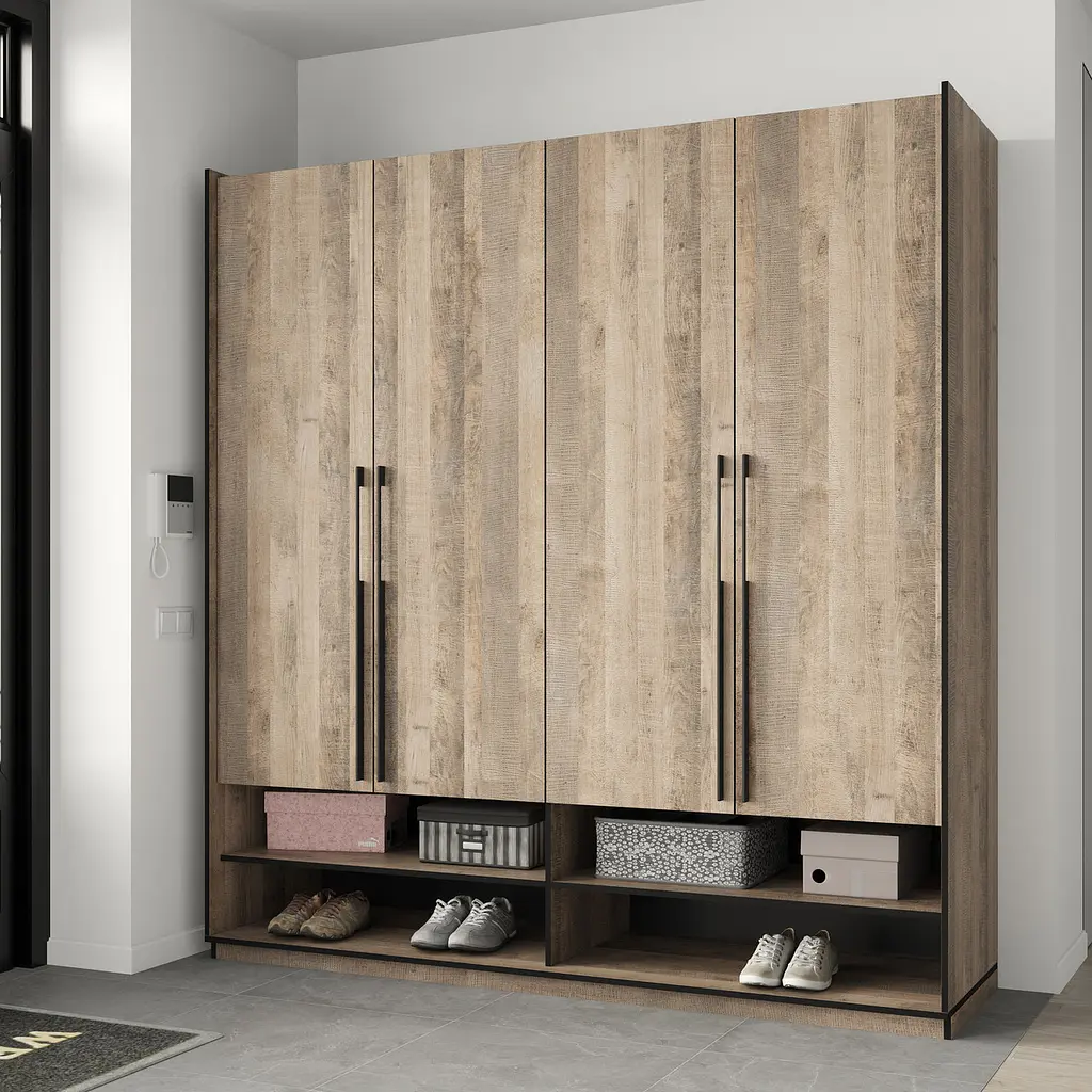 Шафа для одягу, шафа з поличками та штангою на 4 двері, шафа у передпокій FR-09